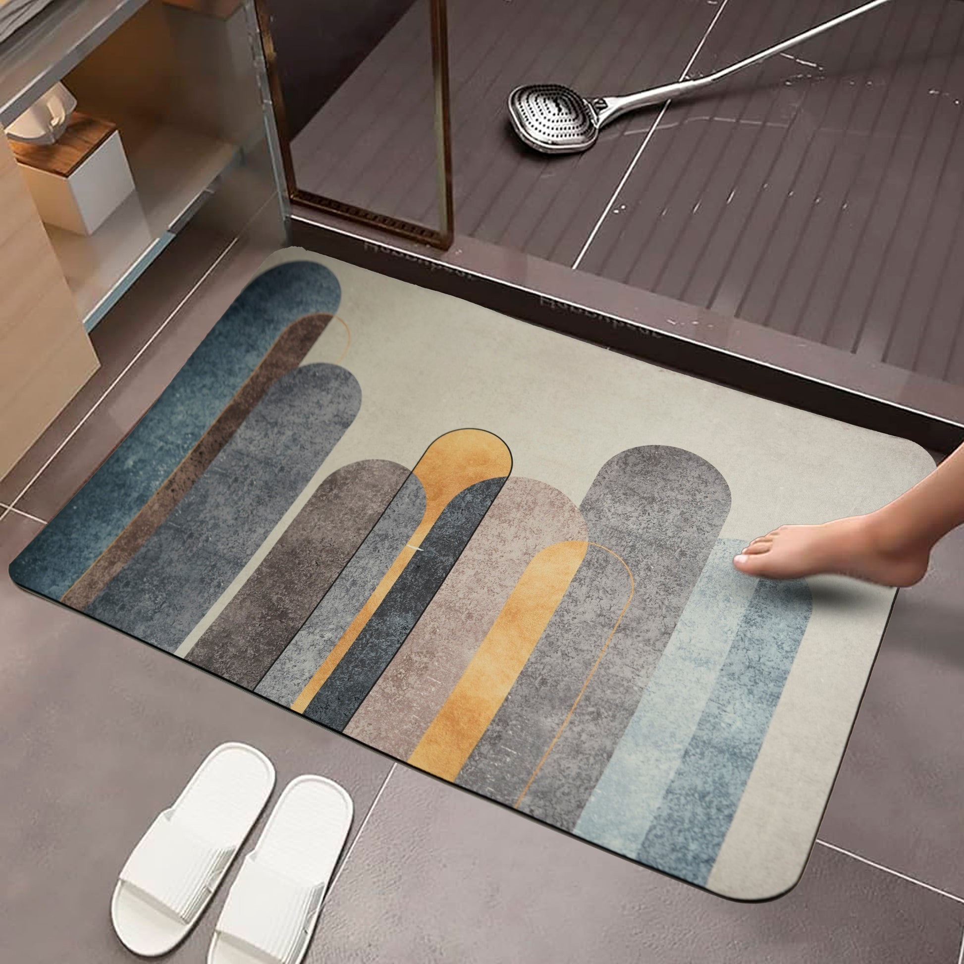 - Water-Absorbing and Quick-Drying: The rubber texture bottom is waterproof and non-slip. It absorbs and prevents water from penetrating the floor.