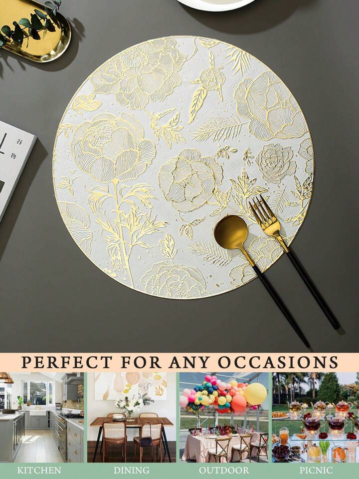 These metallic embossed placemats are perfect for those who appreciate the finer details of hosting. The embossed swirl design, intricately patterned across the placemats, adds a touch of elegance to your table décor. Embrace the art of contemporary dining with these elegant placemats, turning your table into a radiant showcase of opulent design. Ensure that every meal is an occasion to be remembered and cherished with these disposable dining table mats.